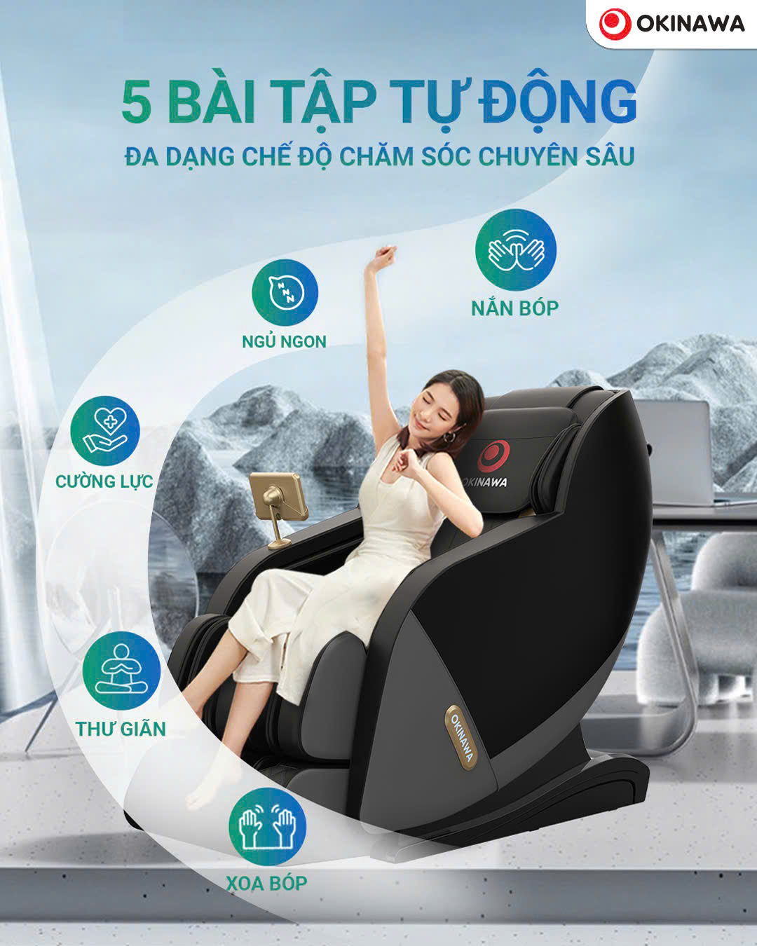 ✔ Cá nhân hóa trải nghiệm: 5 bài tập massage tự động được tích hợp sẵn, đáp ứng hoàn hảo mọi nhu cầu thư giãn của từng thành viên trong gia đình.